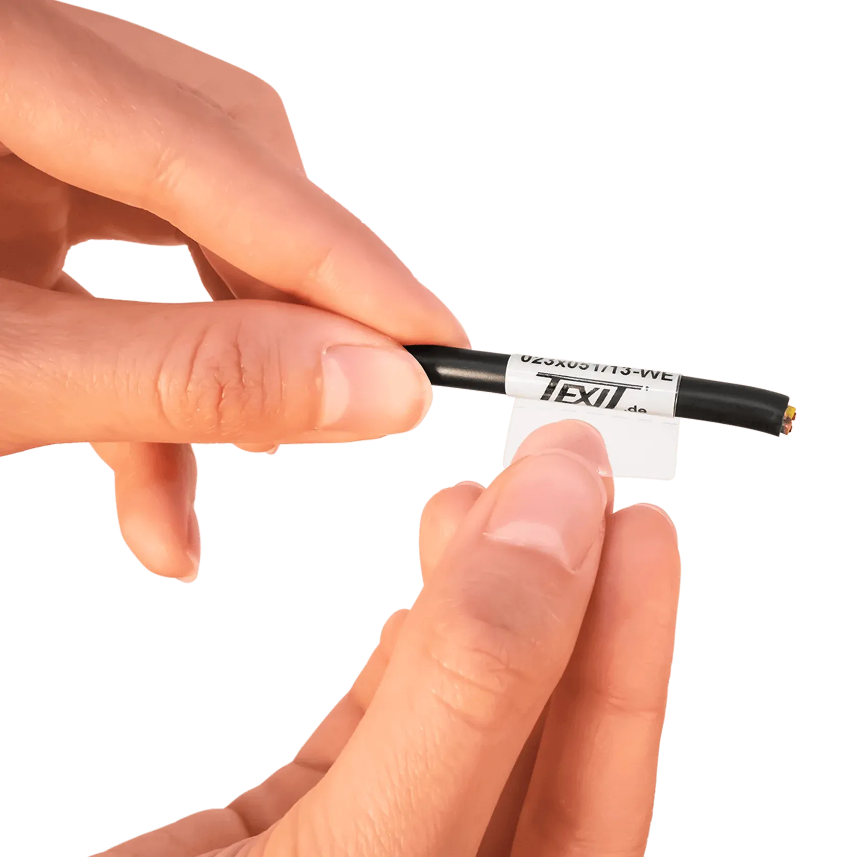 Texit-ove samolaminirajuće nalepnice za kablove su odlično prikladne za obeležavanje kablova, provodnika i žica. Prepoznavanje senzora tokom termo transfer štampe postiže se precizno odštampanim oznakama šipki (crna oznaka) na poleđini papira za nošenje. Polje za znakove je dizajnirano za trajno štampanje otporno na mrlje pomoću FTI-B traka. KRT-P0 markeri se mogu lako ukloniti sa nosača papira radi pričvršćivanja.